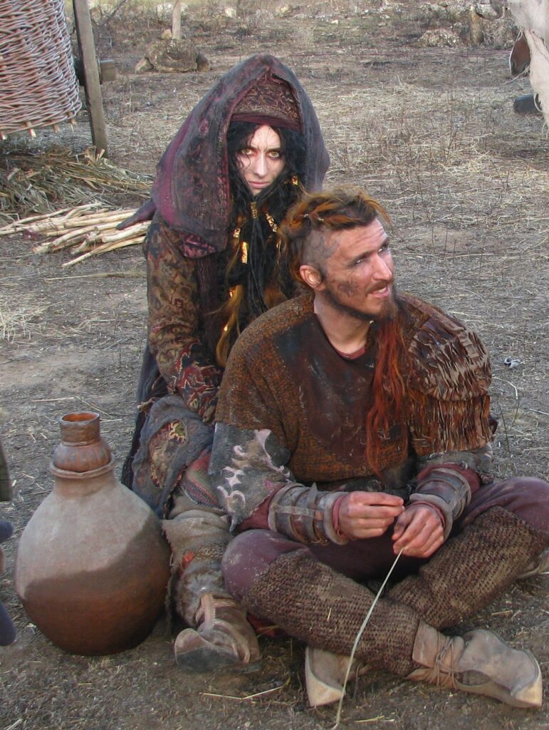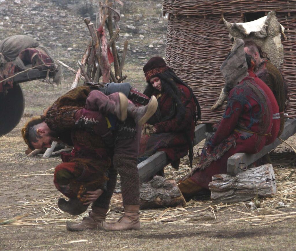 Не хочу в таком формате сравнивать. Все эти фильмы хоть и “исторические”, костюмированные, но разные по жанрам. Сходство есть разве что с “Легендой о Коловрате” в том, что и “Скиф” и “Коловрат” фильмы жанра “исторический экшн”. На этом все сходства заканчиваются. “Скиф” по жанру и атмосфере близок к классическим самурайским приключенческим боевикам, как их называют иногда – “Вестерн с катанами”. То есть, это приключенческий сюжет с крутыми мужиками, сильными поступками и радикальным решением конфликта: либо противник убивает тебя, либо ты противника. Всегда на кону Жизнь или Смерть. Снят фильм полностью в живых декорациях, с любовью к природе и живописи. Наш оператор, Дмитрий Карначик, невероятный художник. То как он смотрит на мир – восхитительно! Мне его работа напоминает картины Айвазовского. Романтика природы и персонажей. Режиссер фильма, Рустам Мосафир, обладает очень интересным ощущением этого материала, эпохи, атмосферы. Каждый из миров, в которых по ходу сюжета оказываются герои, абсолютно самобытен и наполнен своей живой атмосферой. Было очень интересно наблюдать, как со сценария все переходило в живые образы, костюмы и декорации. Так же кастинг. Целью Рустама было найти настоящих мужественных актеров, которым даже “играть в мужика” не надо. И ему это удалось на сто процентов. Каждый персонаж в фильме полностью соответствует своей роли и максимально попадает в образ. Не пройду мимо и главной женской роли – Василиса Измайлова излучает с экрана настоящую женскую силу и очарование. Было непросто найти такую актрису под такую эпоху, актрису с потрясающей естественной красотой. И в итоге все это гораздо ближе к фильмам “Конан-Варвар”, “Вальгалла: Сага о викинге”, сериалу “Викинги”, к игре “For Honor”. Некая своя вселенная со своими правилами и взаимоотношениями, поведением людей и прочими деталями, дающими погружение в атмосферу фильма. Примерно так.